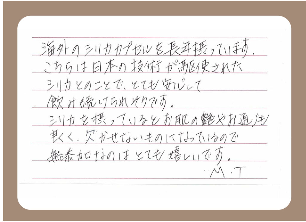 シリカ水でコーヒーを入れたりハブティーやお茶をいれて飲めて、健康と美しさが手に入るから、サプリメントがいらなくなりました。