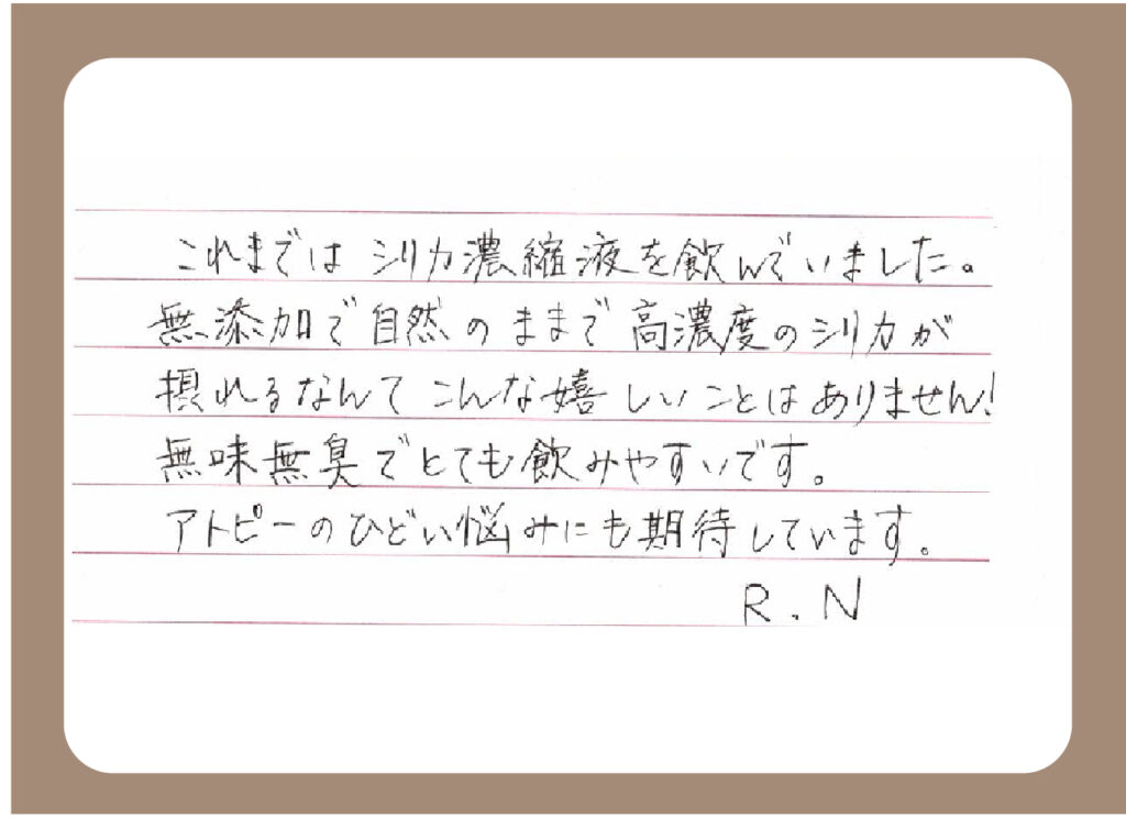 そんな時知人の紹介で、もみ殻シリカのサプリメントを紹介され、シリカサプリメントと同時にシリカ入り石鹸を使ってみたら、なんと!その日からピッタリと痒みが止まったのです!